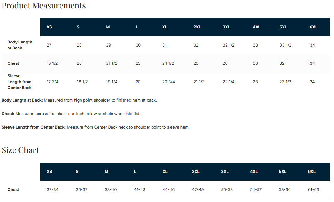 Adult Size Chart: