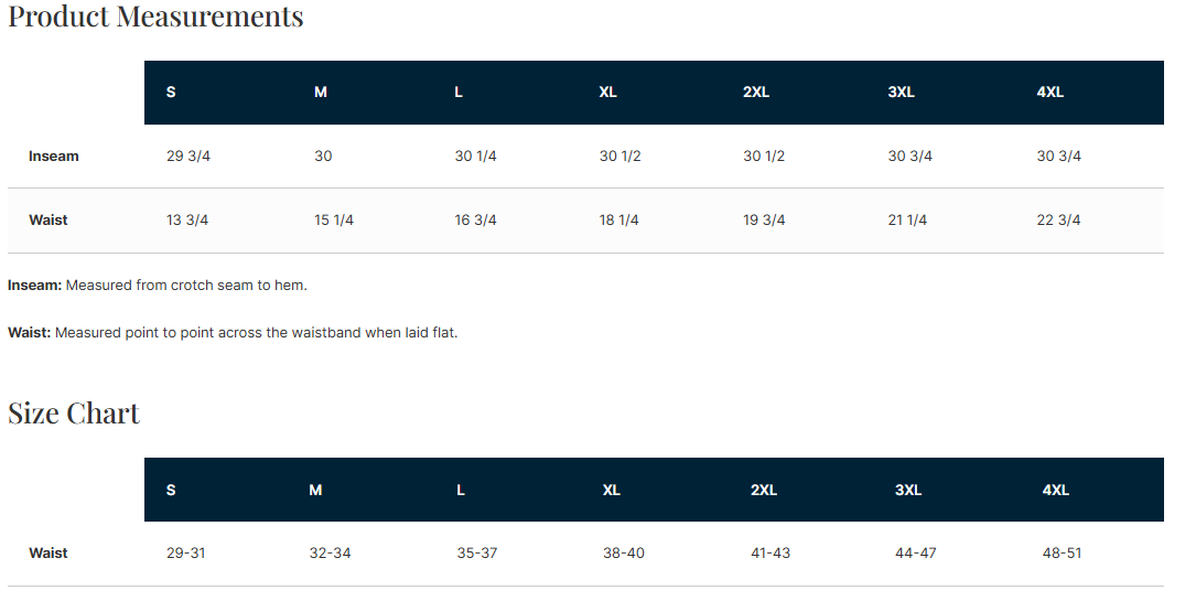 ADULT Size Chart (inches)