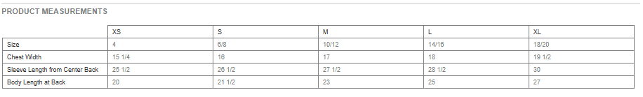 Youth Size Chart: (Inches)